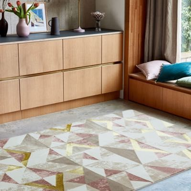 These Sydney rugs are a lovely range in a metallic colour palette with contemporary, distressed designs. Made in hard-wearing but soft to touch pile, 60% Polyester 40% polypropylene.